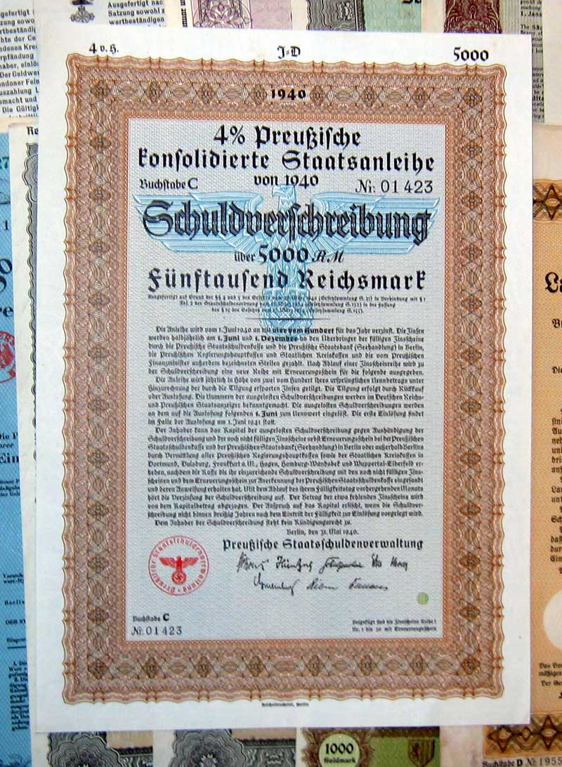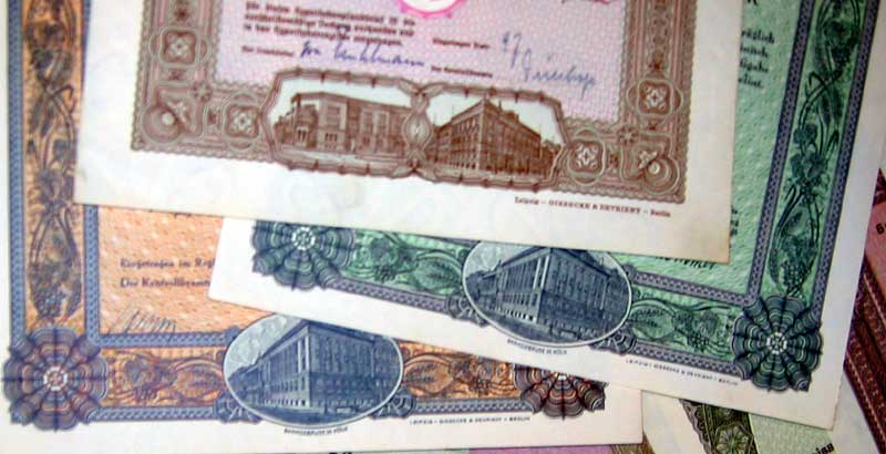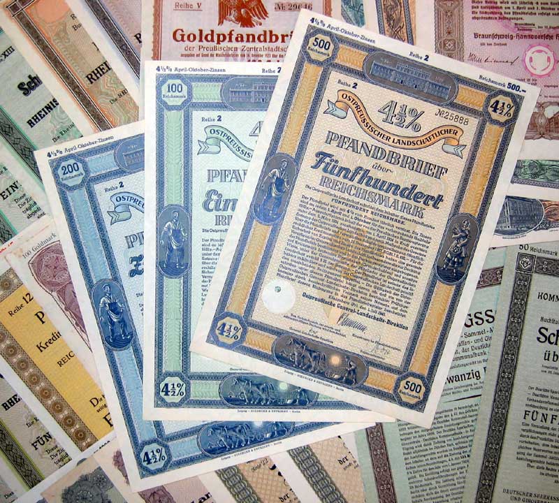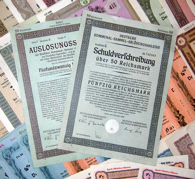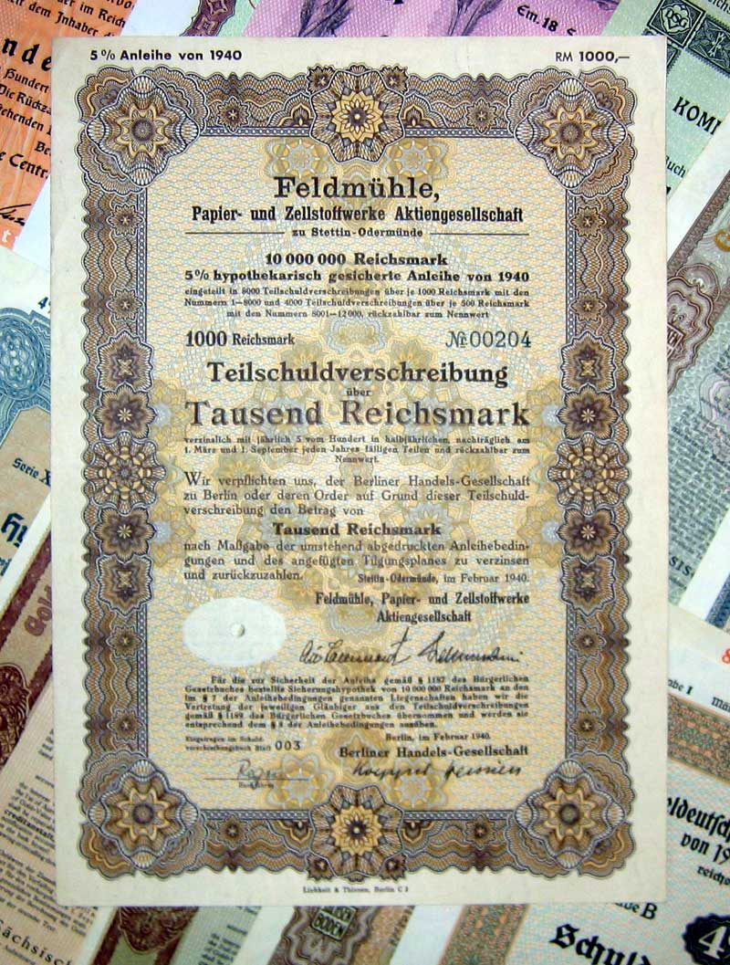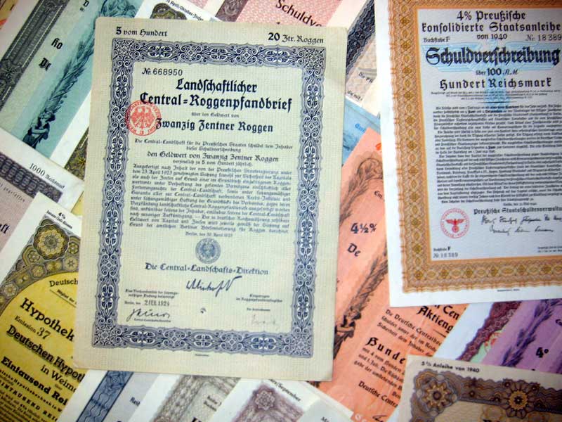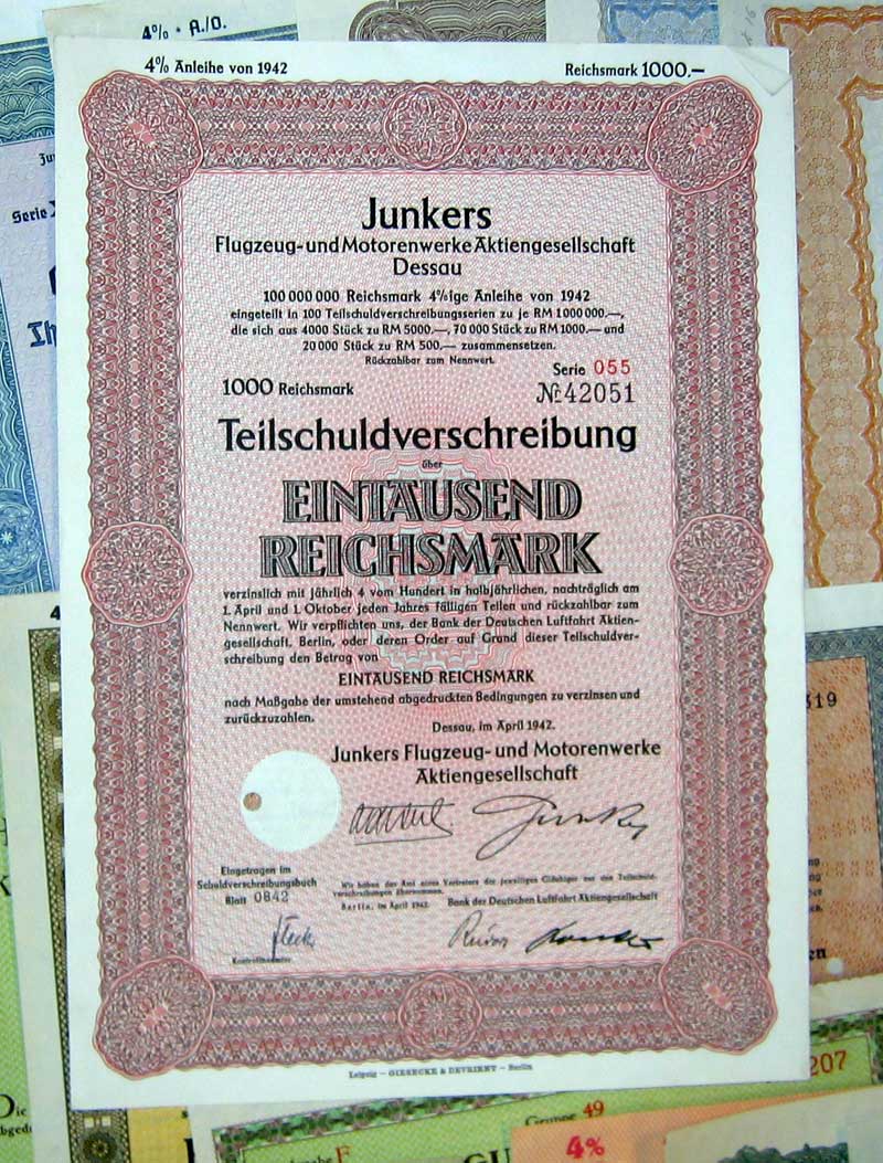 419 verschiedene echte und originale Aktien und Anleihen aus den Jahren 1913-1944, alles in sammelwürdiger Erhaltung. Dabei wissentlich keine Knochen bzw. keine 3. Wahl.