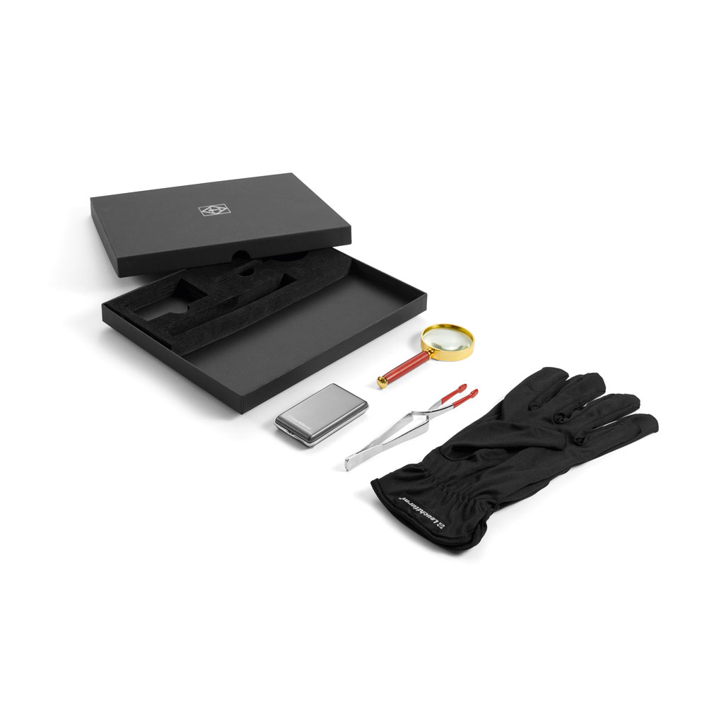 Surprise a coin collector or beginner with our practical gift set. It contains elegant microfibre coin gloves (size M) in black that protect your coins from fingerprints. The Classic magnifying glass with 3x magnification enables precise detailed viewing, while the Libra Mini digital coin scale ensures exact weight checks. The set is rounded off by the Pi9 coin tweezers (16 cm) with plastic coating, which ensure safe handling of your coins. An ideal set for anyone who wants to maintain and expand their collection professionally.