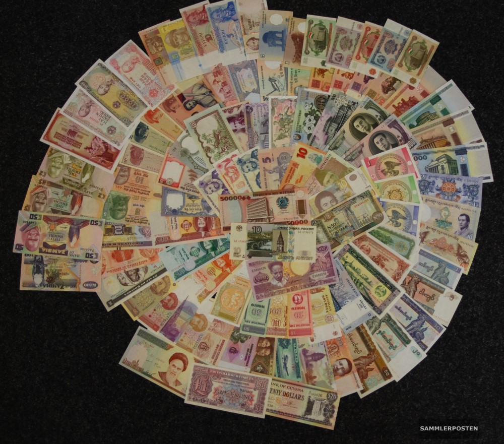 Whole World 100 various bankfrische money uncirculated out numerous Countries